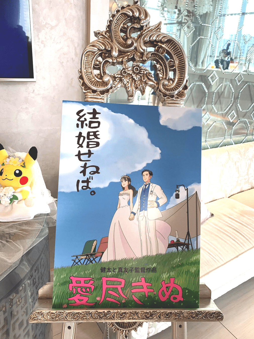 ちなみにタイトルの「愛尽きぬ」、キャッチコピーの「結婚せねば」は新婦さまのアイデアです。 笑