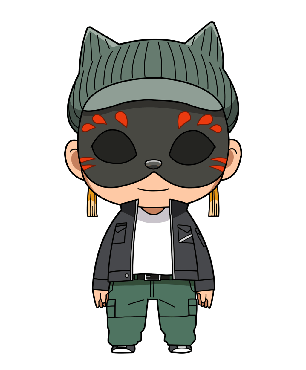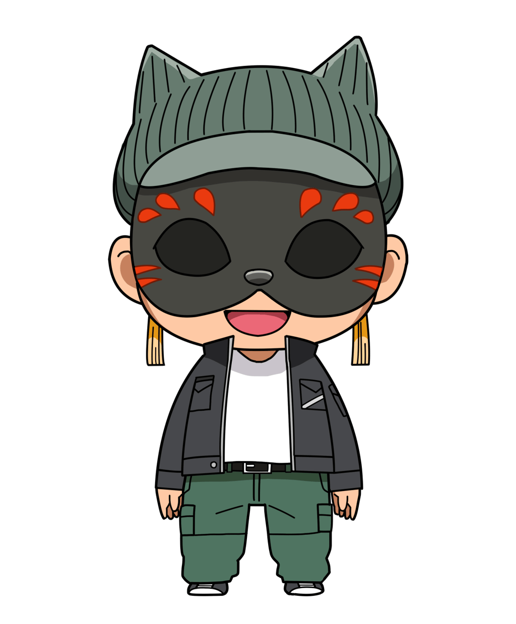 - お面で顔を隠し、個性的に